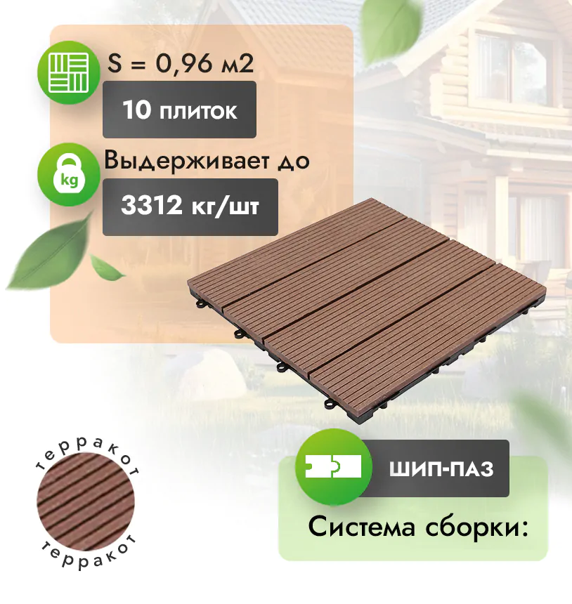 Современный садовый паркет из МПК – это лучший материал для облагораживания ландшафтов или придомовой территории. Он представляет собой модульные плитки из минерально-полимерного композита (МПК) с пластиковой подложкой и замковым креплением типа «шип-паз».
