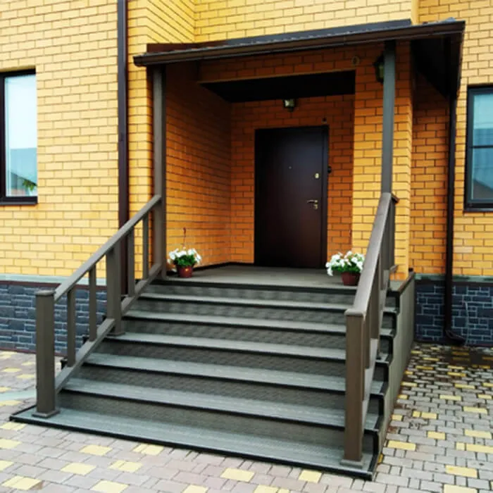 Оформление крыльца ступенями из ДПК (Антрацит)